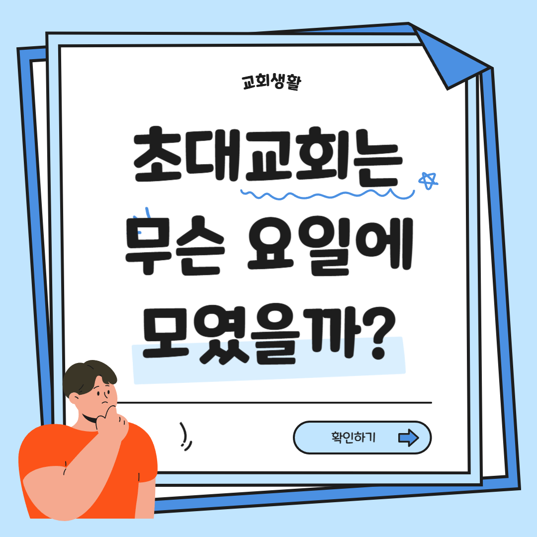 이 땅에 존재하기 시작했던 교회가 모였던 요일은 주간의 첫 날, 일요일이었습니다. 일요일에 모여 예배하는 것은 전혀 이상한 것이 아닙니다. 정기적으로 모여 예배할 수 있다면 그것이 중요한 것이지요. 이 점을 바로 알고 교회생활 하면 좋겠습니다.